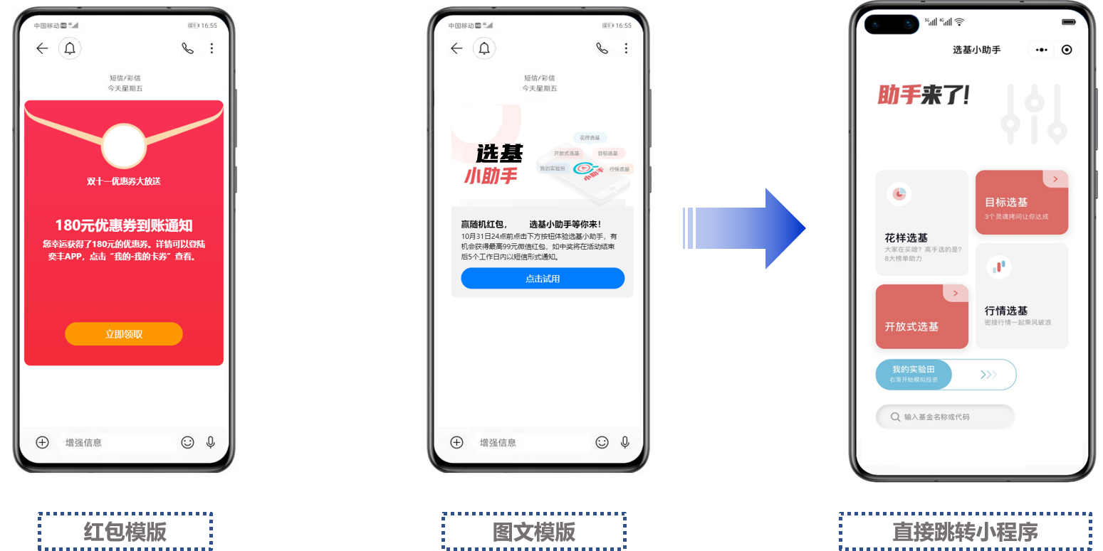 • 营销样式多样化:红包模版提高对用户的吸引度,打破传统营销短信固化样式